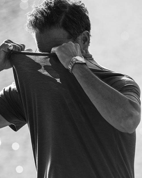 Our Merino Blend Long Sleeve T-Shirt is designed with a regular fit, crew neck and reinforced shoulder seams. Made from a premium and ethically sourced blend of Merino Wool and Tencel™ lyocell, this T-Shirt offers unparalleled softness and functionality. The Merino Wool provides thermal regulation and anti-odor benefits, while Tencel™ lyocell—derived from certified renewable wood sources—delivers a silk-like feel. Both fibres ensure moisture-wicking and quick-drying properties—resulting in a unique fusion of performance and sophistication.